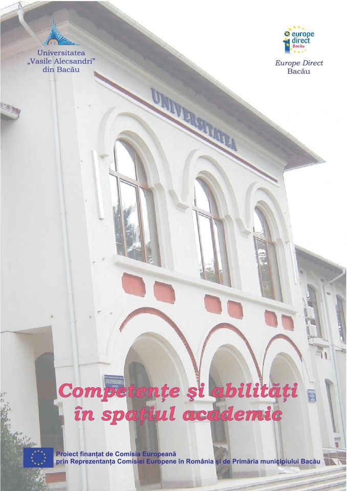 Publicația "Competențe și abilități în spațiul academic" a fost realizată în colaborare cu structura-gazdă a Centrului Europe Direct Bacău, respectiv Universitatea "Vasile Alecsandri" din Bacău. Scopul acesteia a fost acela de a promova abilitățile și competențele tinerilor pe domenii și specializări, care să corespundă standardelor de calitate și priorităților de comunicare în spațiul european.