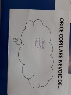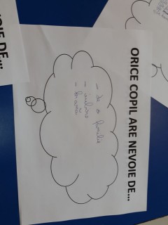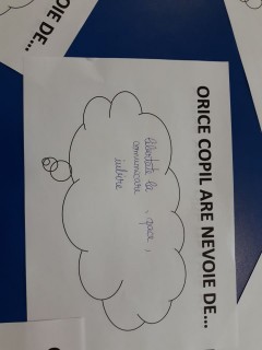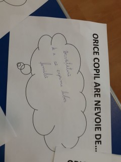 La finalul activității, elevii au realizat și un exercițiu de joc de rol, prin trei cuvinte cheie oferite ca răspuns la întrebarea: Orice copil are nevoie de...