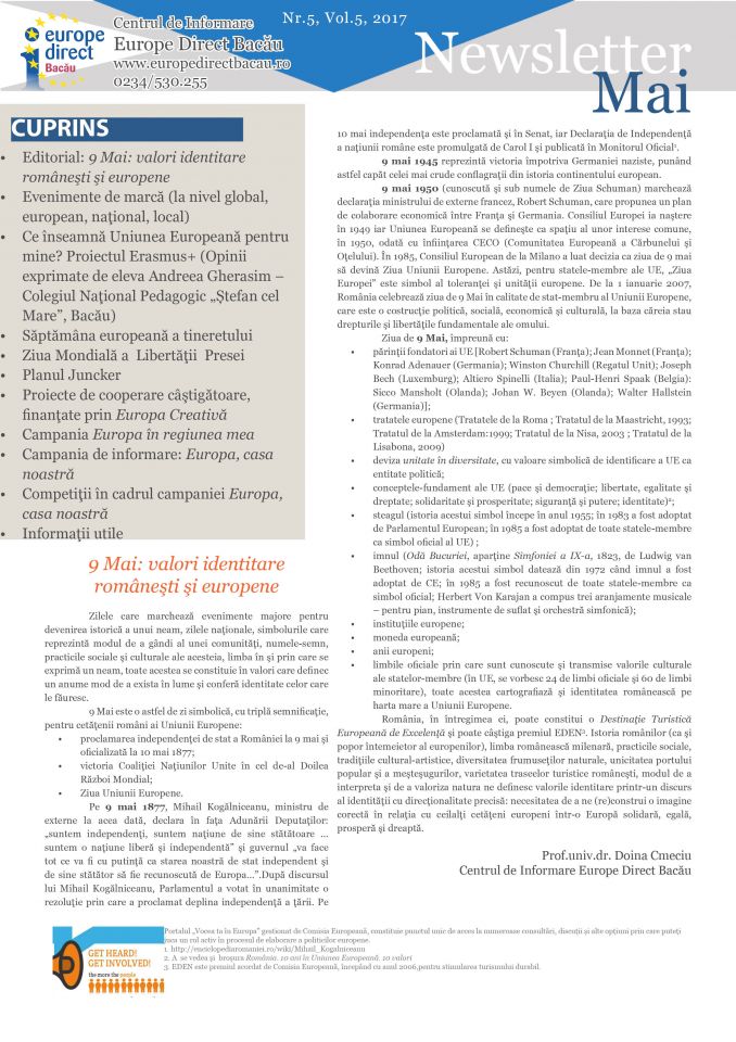 - Editorial: 9 Mai: valori identitare româneşti şi europene