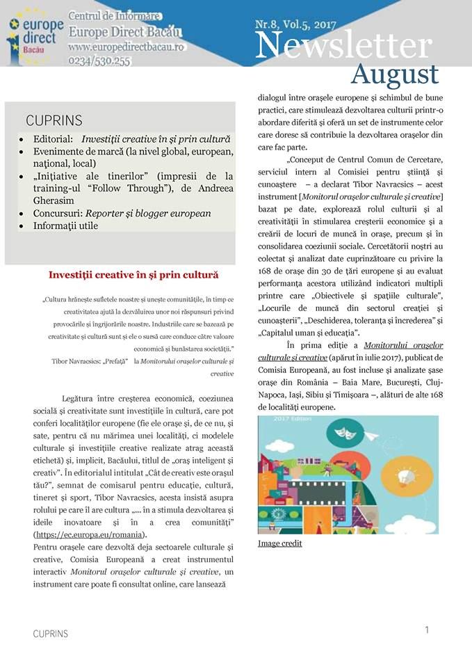 În ediția cu numărul opt a e-buletinului de informare, puteți afla mai multe informații despre: