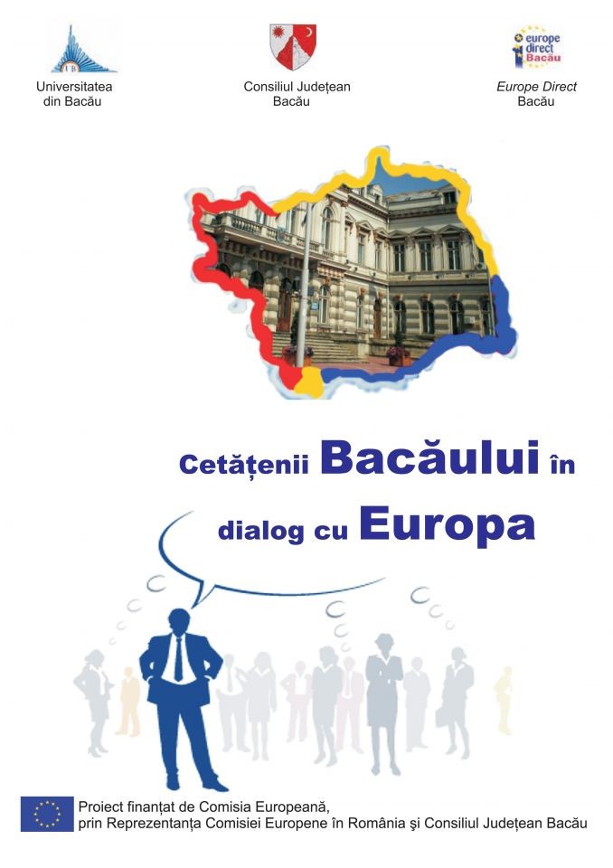Publicația "Cetățenii Bacăului în dialog cu Europa" a avut drept scop prezentarea și diseminarea următoarelor aspecte: politica de dezvoltare regională, Platforma de Monitorizare Lisabona prin impactul la nivel județean, regional și european; concluziile vizitei de bune practici realizată în colaborare cu Centrul Europe Direct Edinburgh-Scoția,UK; importanța multilingvismului în afaceri la nivelul regiunilor europene în colaborare cu Centrul Europe Direct Dobrich-Bulgaria.