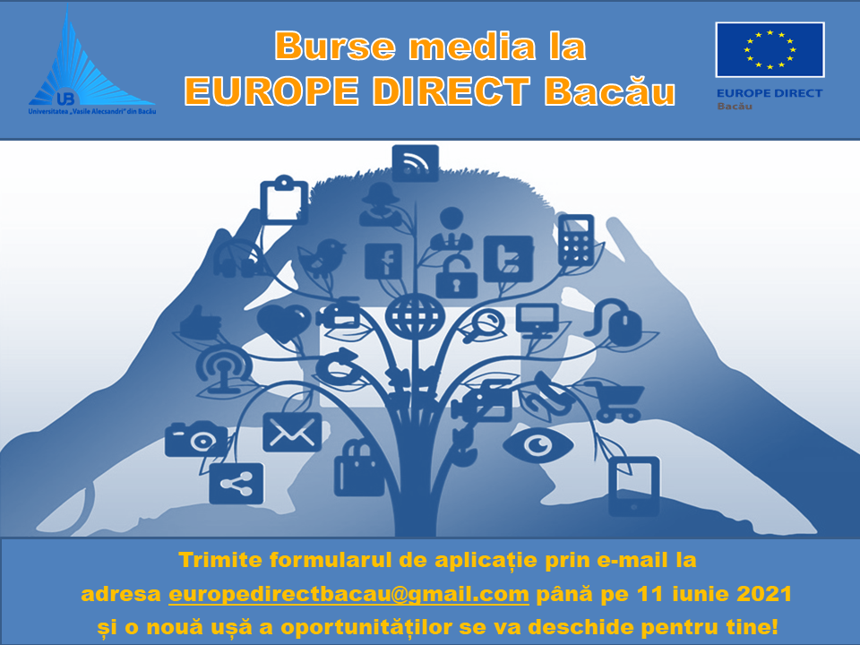 Centrul EUROPE DIRECT (ED) Bacău, găzduit de Universitatea „Vasile Alecsandri" din Bacău (UBc), lansează Programul de burse media ED Bacău pentru anul 2021. Studenţii şi masteranzii Universității „Vasile Alecsandri" din Bacău (UBc) au posibilitatea de a efectua un stagiu de specializare cu bursă în cadrul ED Bacău în perioada iulie-decembrie 2021.