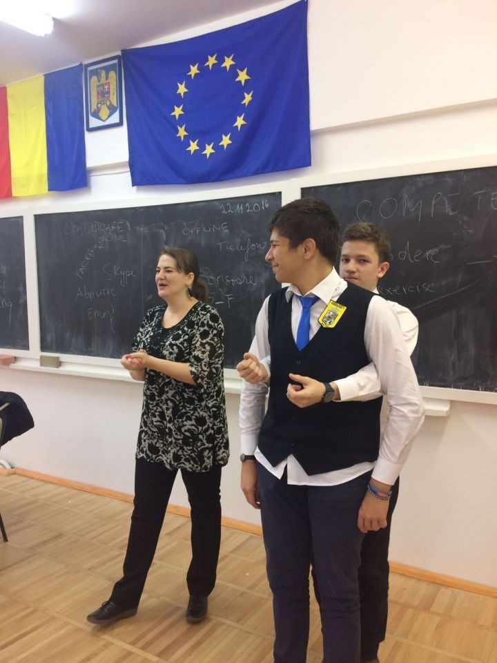 Totodată, am realizat cu elevii și exerciții de dezvoltare a abilităților de vorbire în fața unui public prin exerciții de improvizație pe un subiect ales în timp real. Dorim să mulțumim prof. Nicoleta Nistor pentru invitație și elevilor pentru deschidere și dorință de cunoaștere.