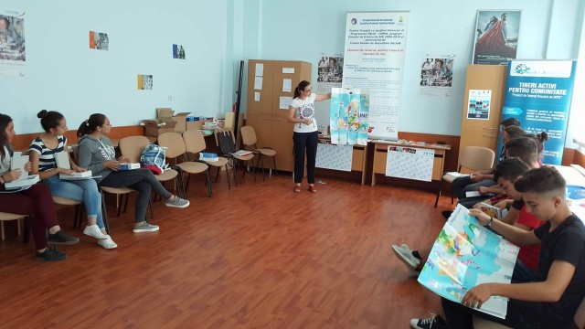 Pentru a facilita folosirea resurselor acestui joc ingenios ȋntr-un mediu in care participanții nu dețin cunoștințe suficient de avansate de limba engleză, reprezentanta EDIC Bacău, dna lector univ. dr. Nadia-Nicoleta Morărașu a făcut tinerilor voluntari o demonstrație practică, după ce, ȋn prealabil, le-a pus la dispoziție fiecăruia un set de traduceri ale regulilor de joc, ale profilelor regiunilor şi a cartonașelor cu provocări pe care copiii le vor avea de îndeplinit.