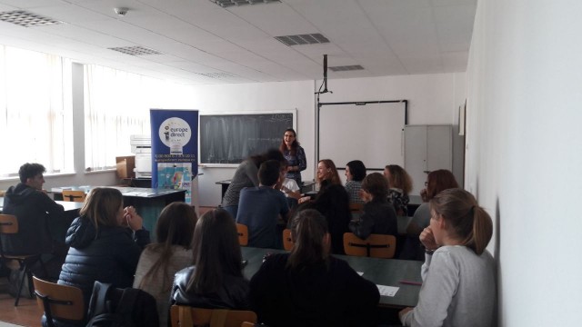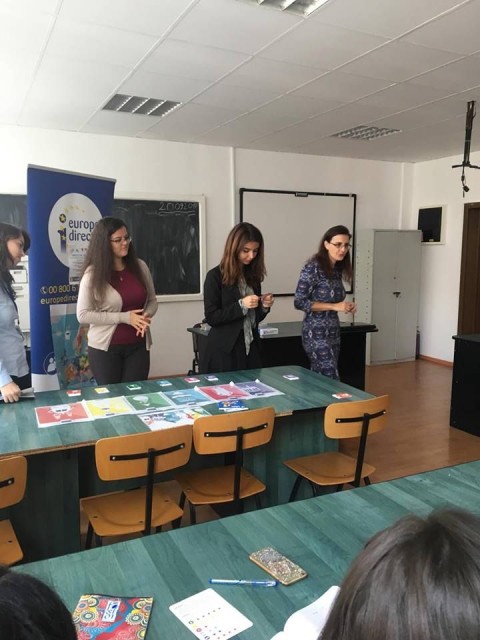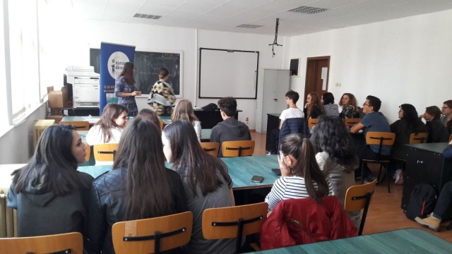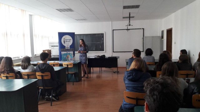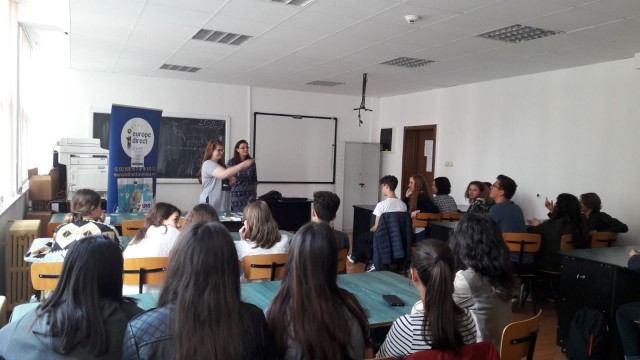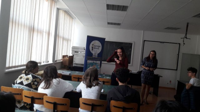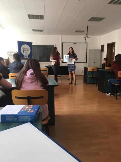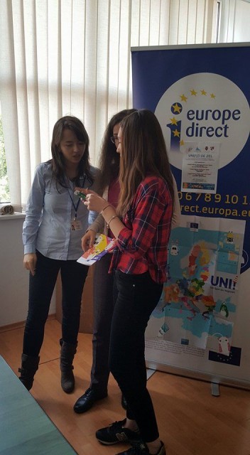 Următorul popas al caravanei a avut drept gazdă pe dna profesoară de limba engleză Diana Popa. Împreună cu colegele de catedră, dumneaei a invitat 30 de elevi pasionați de limba engleză, de la mai multe clase de liceu, la o sesiune interactivă realizată de dna lector dr. Nadia Morărașu, pe tema rolului limbilor ca factor de coeziune ȋn interiorul regiunilor din UE şi a necesitații păstrării lor ȋn patrimoniul cultural european. Prin participarea la scenariul propus prin Jocul Regiunilor UNI!, elevii au înțeles că scopul final este acela de a coopera atât ȋn echipa cât si cu celelalte echipe, ȋn vederea îmbunătățirii situației unor regiuni ipotetice. La final, fiecare echipă a avut de câștigat, deoarece nu au concurat una împotriva celeilalte ci au colaborat pentru ca fiecare să atingă un nivel mai ridicat de bunăstare.