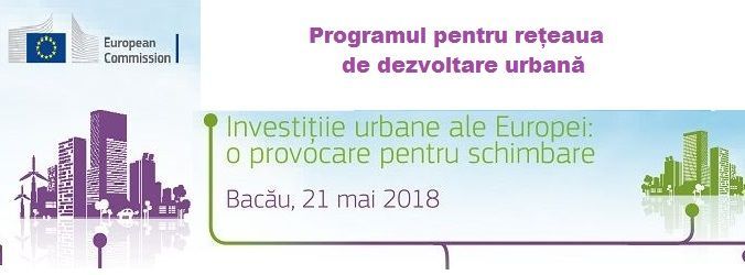 Conferința Rețelei de Dezvoltare Urbană cu tema „Investițiile urbane în Europa: provocare pentru schimbare" organizată de Direcția Generală Politică Regională și Urbană (DG Regio) va avea loc la Bacău pe 21 aprilie 2018 la Centrul de Afaceri si Expoziții „Mircea Cancicov".