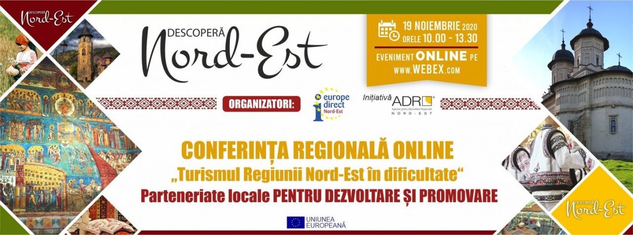 Agenția pentru Dezvoltare Regională Nord-Est și Centrul Europe Direct Nord-Est organizează, sub egida inițiativei "Descoperă Nord-Est", o conferință regională online, dedicată analizei situației curente a sectorului turismului din Regiunea Nord-Est și identificării pașilor de relansare a acestuia.