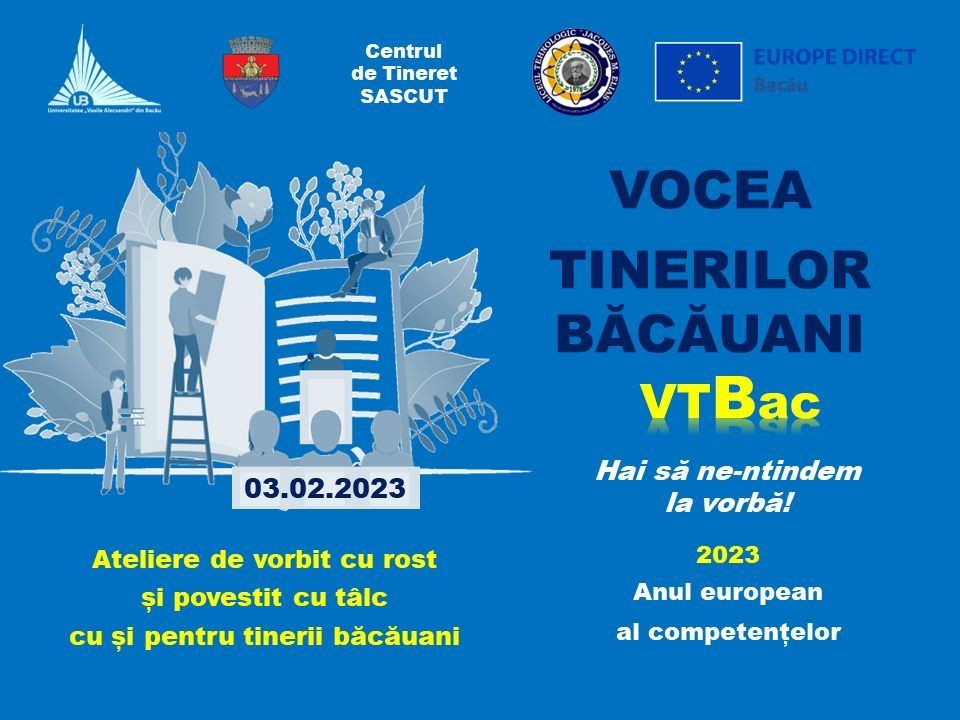 În Anul european al competențelor (2023), echipa EUROPE DIRECT Bacău isi uneste eforturile pentru a contribui la dezvoltarea competențelor pentru viață și abilităților sociale prin antrenarea inteligențelor verbale și emoționale ale tinerilor, în mediul în care ei trăiesc și învață. Cum? Ajutându-i să deprindă strategii de vorbit în public încă de la vârsta adolescenței. Oferindu-le noi oportunități de a se exprima prin viu grai în afara clasei, a cercului de prieteni și a familiei, ghidați de profesioniști în arta vorbirii și a povestirii.