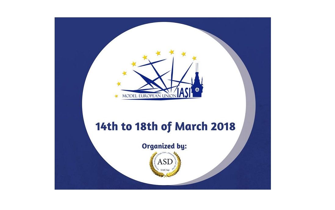 Asociația Studenților la Drept din cadrul Universității ,,Alexandu Ioan Cuza" Iași (ASD-UAIC Iași), în parteneriat cu BETA e.V. – Bringing Europeans Together Association, va desfășura a doua ediție a proiectului Model European Union Iași cu scopul de a crea un cadru optim pentru simularea procesului decizional al instituțiilor Uniunii Europene, într-un context multicultural.