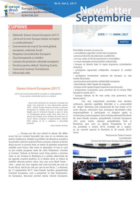- Editorial: Starea Uniunii Europene (2017): „De la est la vest: Europa trebuie să respire cu ambii plămâni."